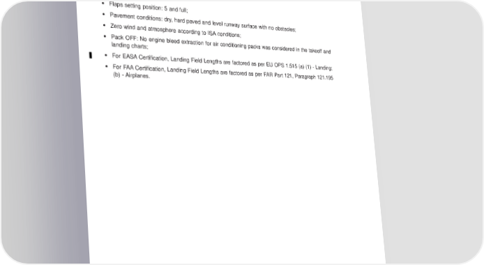 AIRPORT PLANNING MANUAL 3.4. LANDING FIELD LENGTHS Thelandingfield length charts provide data about the maximum landing weights, for compliance with the operating regulations relating to landing field lengths. Data are presented according to the following associated conditions: • Landing gear: down; • Flaps setting position: 5 and full; • Pavement conditions: dry, hard paved and level runway surface with no obstacles; • Zero wind and atmosphere according to ISA conditions; • Pack OFF: No engine bleed extraction for air conditioning packs was considered in the takeoff and landing charts; • For EASACertification, Landing Field Lengths are factored as per EU OPS 1.515 (a) (1) - Landing; • For FAACertification, Landing Field Lengths are factored as per FAR Part 121, Paragraph 121.195 (b) - Airplanes. EFFECTIVITY: ALL Section 3 Page 3-16 Oct 31/12 w-apm1346