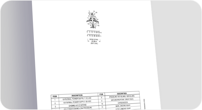 AIRPORT PLANNING MANUAL 1 12 14 13 7 34 10 11 9 8 13 6 10 11 2 5 14 0 5 10 15 20 25 m 01632 64 48 80 ft WING SPAN: 25.99 m (85 ft 3 in.) ITEM DESCRIPTION ITEM DESCRIPTION 1 EXTERNAL POWER SUPPLY 115 VAC 8 PRESSURE REFUELING / DEFUELING 2 EXTERNAL POWER SUPPLY 28 VDC 9 GROUNDING POINT (RIGHT MLG) 3 ENGINE AIR STARTING 10 CARGO DOOR 4 AIR CONDITIONING LOW PRESSURE 11 MAIN LANDING GEAR 5 WASTE SERVICING PANEL 12 NOSE LANDING GEAR 6 POTABLE WATER SERVICING PANEL 13 PASSENGER DOOR 7 OXYGEN REFILL / REPLACE BOTTLE 14 SERVICE DOOR EM170APM090003.DGN Scale: 1 Inch Equals 100 Feet Figure 9.3 EFFECTIVITY: ALL Section 9 Page 9-4 Dec08/03 w-apm1346