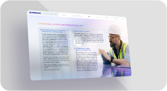 RELATÓRIO ANUAL / 2022 ABOUT FIT FOR GROWTH & ESESGG INNOVATION BUSINESS SUSTAINABILITY EMBRAER FINANCIAL PERFORMANCE UNIT INDICATORS OPERATIONAL SAFETY AND PRODUCT QUALITY IMPLEMENTATION OF THE SAFETY OGMA SAFETY SUMMIT MANAGEMENT SYSTEM (SMS) The OGMA Safety Summit – Conference on Safety Mana- In 2022, Embraer actively participated in the gement System – gathered in Alverca, Portugal, four ex- review and development of the SM-0001 stan- perts from the areas of Safety and Quality to address topi- dard, focused on operational safety, contribu- cs of Operational Safety. Among professionals, specialists ting to the implementation of SMS* for the en- and the OGMA team, the event had about one hundred tire aeronautical industry around the globe. In participants, from twenty-seven entities of the aeronau- the company, SMS was 昀椀rstly implemented in tical community. all its U.S. maintenance units, and the imple- mentation of SMS for OGMA** maintenance units in Portugal was 昀椀nalized. As a result, all II OPERATIONAL SAFETY the company’s European maintenance units AND QUALITY WEEK 2022 are already able to meet the new regulations of EASA – The European Aviation Safety Agency, For the second year in a row, Embraer which will be mandatory by the end of 2024. joined the themes of Operational Safety In Brazil, the company joined forces with and Quality in a single week dedicated ANAC – National Civil Aviation Agency to devi- to discussing with external experts, the se the Brazilian operational safety regulations senior leadership of the company and for the aeronautical industry. collaborators, success cases, challenges, and trends for these two capital topics for * SMS is a global, systematic, and standardized approach the aeronautical industry. The event was to managing operational safety risks for the aeronautical online and open to 100% of collaborators, industry. and all content is available for reference **Aeronautical Industry of Portugal on the intranet, further af昀椀rming the company’s culture of safety and quality. 3535