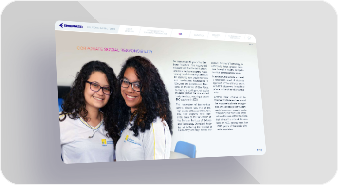 RELATÓRIO ANUAL / 2022 ABOUT FIT FOR GROWTH & ESESGG INNOVATION BUSINESS SUSTAINABILITY EMBRAER FINANCIAL PERFORMANCE UNIT INDICATORS GRI 413 CORPORATE SOCIAL RESPONSIBILITY For more than 20 years the Em- dents in Science & Technology, in braer Institute has supported addition to fostering social inclu- education in Brazil to build a fairer sion through a healthy competi- and more inclusive country, main- tion that generates knowledge. taining two full-time high schools In addition, the schools achieved for students from public schools a remarkable result of students and low-income households in approved in the entrance exam, São José dos Campos and Botu- with 75% of approval in public or catu, in the State of São Paulo. private universities with scholar- To them, a contingent of paying ship. students (20% of the total student body) is added, reaching a total of Another major initiative of the 800 students in 2022. Embraer Institute revolves around The resumption of face-to-face the response to climate emergen- school classes was one of the cies. The Institute joined the cam- high points of the year 2022. With paign to donate necessity goods, this, new programs were laun- integrating into the hall of organi- ched, such as the 1st edition of zations that sent aid for the 昀氀oods the Embraer Institute of Science that struck the state of Pernam- and Technology Olympiad, targe- buco in 2022, serving more than ted at furthering the interest of 1,000 people of the area’s vulne- elementary and high school stu- rable population. 2929