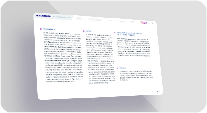 RELATÓRIO ANUAL / 2022 ABOUT FIT FOR GROWTH & ESG INNOVATION BUSINESS SUSUSSTTAINABILAINABILITITYY EMBRAER FINANCIAL PERFORMANCE UNIT INDICINDICAATTORORS S ENGINEERING RECEIPT TREATMENT OF NONCONFORMITIES (PRODUCT AND PROCESS) In the aircraft certi昀椀cation process, components To receive the products, Embraer es- should also undergo a speci昀椀c certi昀椀cation cam- tablishes speci昀椀c inspection stan- When identifying suspicious or counterfeit parts, the paign. Equipment is subject to tests and should have dards for each type of material. These material is segregated in quarantine following the same a certi昀椀cate of conformity, as well as the con昀椀gura- standards include physical and docu- process for the treatment of noncompliant products. tion of the laboratory and the procedure used in the mentary characteristics (certi昀椀cate of In the case of identi昀椀cation of nonconformities in the test. All certi昀椀cation artifacts are approved by the conformity, test report) that should ac- processes pertaining to the handling of counterfeit certi昀椀cation authority or its representatives. These ar- company the product, ensuring tracea- parts, corrective actions are carried out to contain the tifacts make up the technical data required to obtain bility to the source of supply. Upon re- recurrence of the problem and ensure de昀椀nitive solu- the aircraft type certi昀椀cate. Each aircraft is produ- ceipt, the identi昀椀cation of the material, tion. Parts for scrap disposal have their disposal strictly ced by a production organization certi昀椀ed according packaging conditions, quantities, do- controlled to avoid misuse in the production process. to the type certi昀椀cate. A new or modi昀椀ed component cumentation delivered, supplier appro- can only be installed on a certi昀椀ed aircraft if it meets ved in the system is checked, that is, all the steps referred to above by following the design the information is checked to ensure modi昀椀cation procedure. As a member of the Mate- that the product delivered meets the rial Review Board (MRB), product engineering is also speci昀椀cations of the purchase order. In responsible for tackling equipment nonconformities, some situations, de昀椀ned in the receipt TRAINING ensuring that they meet applicable requirements. standards, the products or samples are Engineering may still issue inventory re-inspection sent to laboratories for tests that prove Collaborator training is offered by the EmPower system requests for updating, return, testing or visual ins- compliance with the speci昀椀ed techni- on the impact of counterfeit parts on the aeronautics pections. Requesting quality to include equipment cal requirements. When excess parts industry and prevention. The practices carried out by limitation notes that restrict use in 昀氀ight, delivery to are received, parts are scrapped if the Embraer are also implemented in speci昀椀c procedures customer or otherwise, is another option. supplier does not update the documen- in the areas. tation to ensure traceability. 149