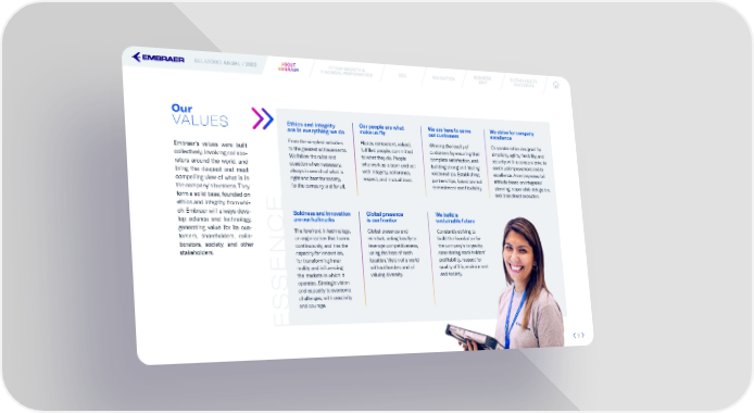 RELATÓRIO ANUAL / 2022 ABABOUOUTT FIT FOR GROWTH & ESG INNOVATION BUSINESS SUSTAINABILITY EMBREMBRAERAER FINANCIAL PERFORMANCE UNIT INDICATORS Our VALUES Ethics and integrity Our people are what We are here to serve We strive for company are in everything we do make us 昀氀y our customers excellence From the simplest activities Happy, competent, valued, Winning the loyalty of Corporate action designed for Embraer’s values were built to the greatest achievements. ful昀椀lled people, committed customers by ensuring their simplicity, agility, 昀氀exibility, and collectively, involving collabo- We follow the rules and to what they do. People complete satisfaction, and security, with a constant drive to rators around the world, and question when necessary, who work as a team and act building strong and lasting continual improvement and to bring the deepest and most always in search of what is with integrity, coherence, relationships. Establishing excellence. An entrepreneurial compelling view of what is in right and best for society, respect, and mutual trust. partnerships, based on real attitude based on integrated the company’s business. They for the company and for all. commitment and 昀氀exibility. planning, responsible delegation, form a solid base, founded on and disciplined execution. ethics and integrity, from whi- ch Embraer will always deve- Boldness and innovation Global presence We build a lop science and technology, are our hallmarks is our frontier sustainable future generating value for its cus- The forefront in technology, Global presence and Constantly striving to tomers, shareholders, colla- an organization that learns mindset, acting locally to build the foundation for borators, society, and other continuously, and has the leverage competitiveness, the company’s longevity, stakeholders. capacity for innovation, using the best of each considering stockholders’ for transforming inner location. Vision of a world pro昀椀tability, respect for reality and in昀氀uencing without borders and of quality of life, environment the markets in which it valuing diversity. and society. SENCEoperates. Strategic vision and capacity to overcome challenges, with creativity S and courage. E 9